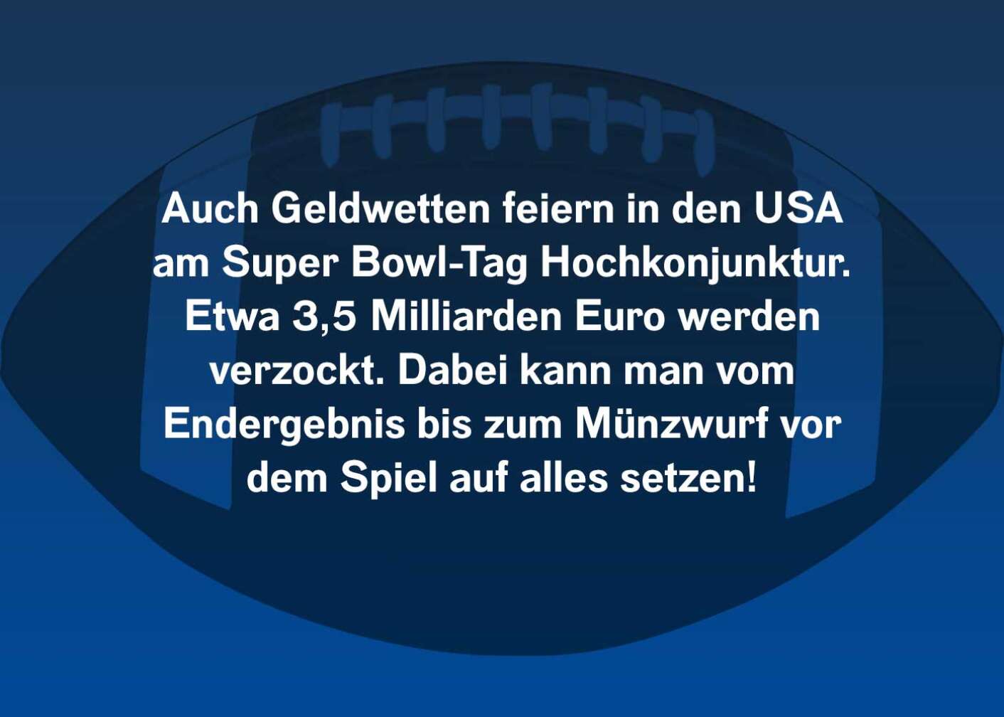 Der Wahnsinn lässt sich hierzulande teilweise schwer begreifen - jedoch gut in Zahlen zusammenfassen! Von Werbekosten über Wetteinsätze bis hin zum Bier-Verbrauch - in unserer Bildergalerie haben wir euch zehn kuriose Fakten rund um den Super Bowl zum Durchklicken gesammelt.