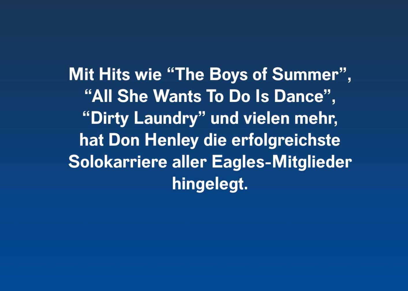 Mit Hits wie "The Boys of Summer", "All She Wants To Do Is Dance" oder "Dirty Laundry" lieferte er Hit um Hit.